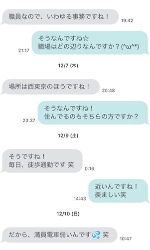 マッチングアプリとかでマッチングすると まずメッセージからやり取り始めますよね。 どんな人かもまったくわからないのでお互い質問し合ったりしてコミュニケーションとってきますよね。 ん?? あなた答えるだけですか???笑 私インタビュアーなんですか…